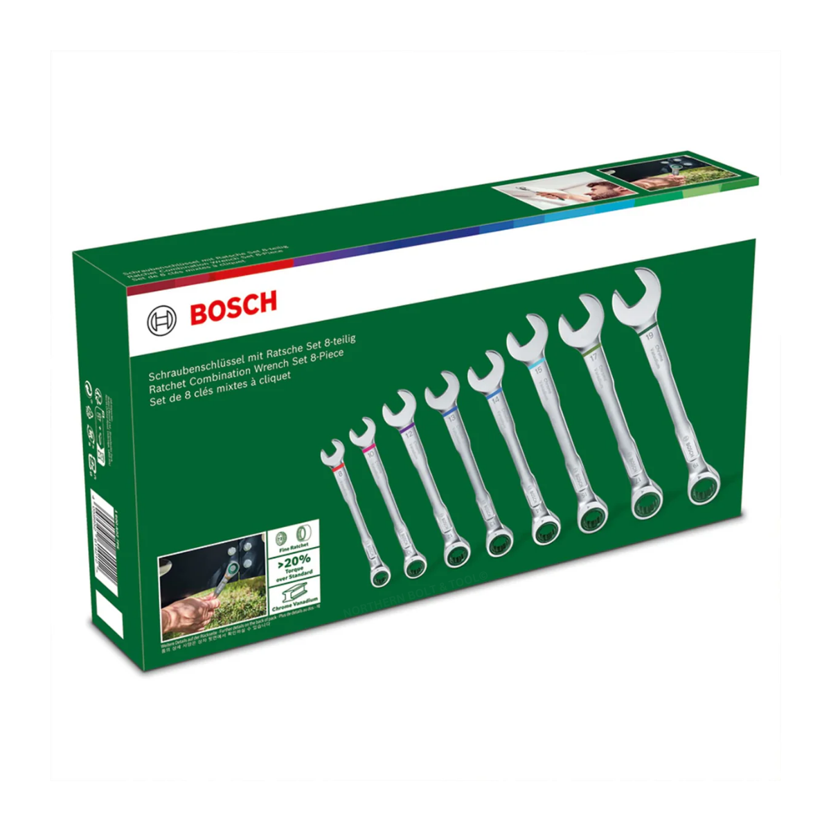 Bosch DIY Ratchet Combination Wrench Set 8-piece 1600A027PS - Top performance and ultimate convenience with ratchet combination wrenches