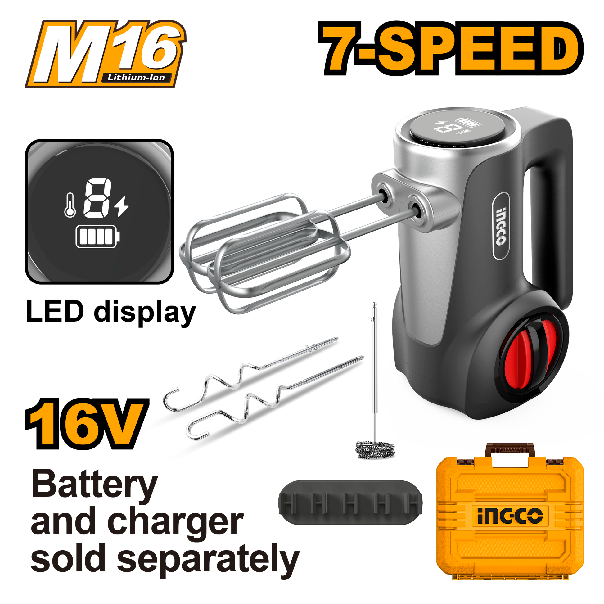 Ingco Cordless Hand Mixer 125W 7 Speed 16V