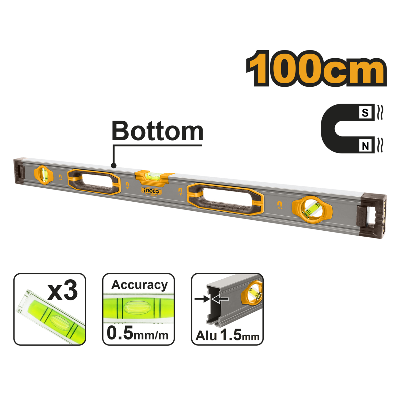 Ingco Aluminum Level With Magnet 1M