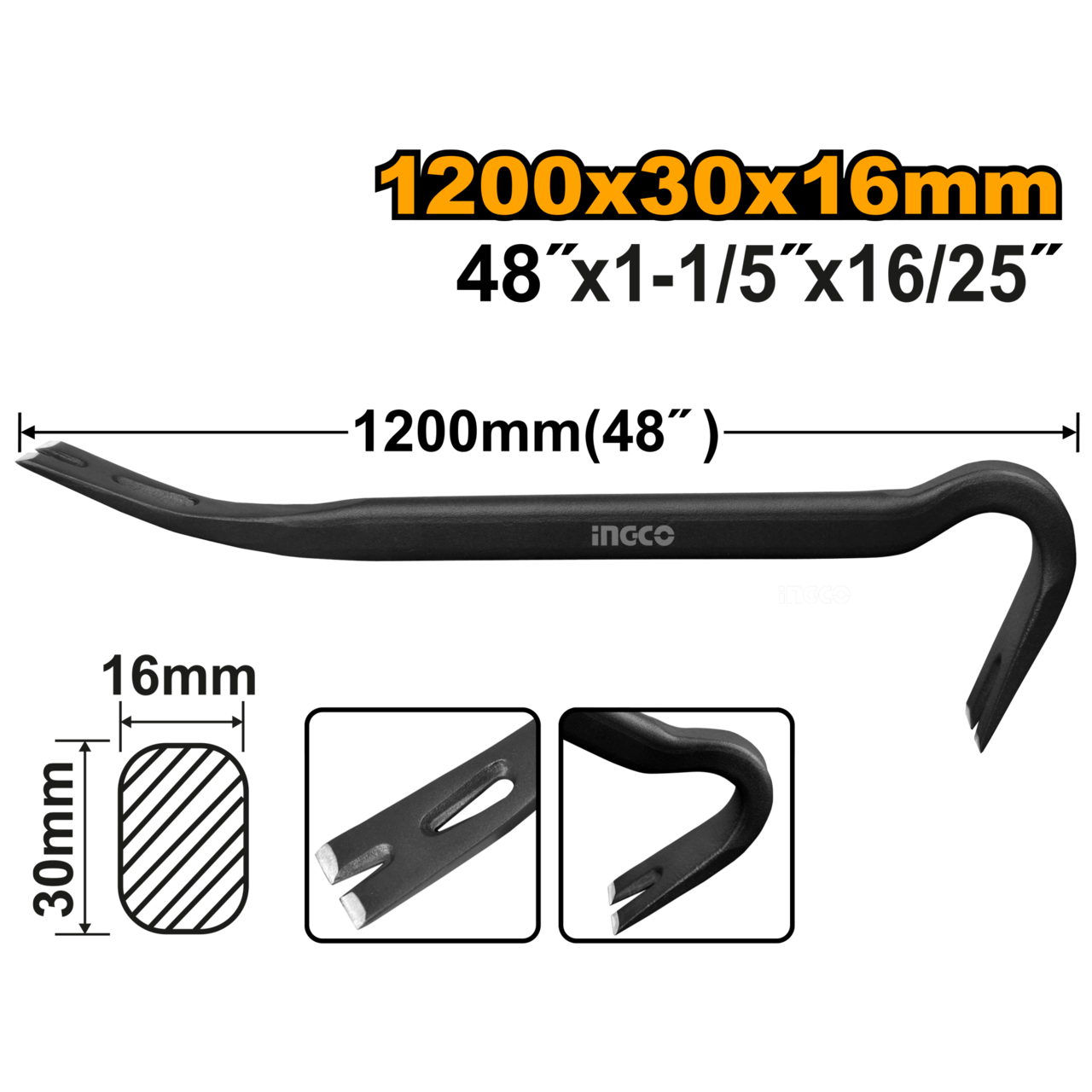 Ingco Wrecking Bar 1200mm X30mm X 16mm